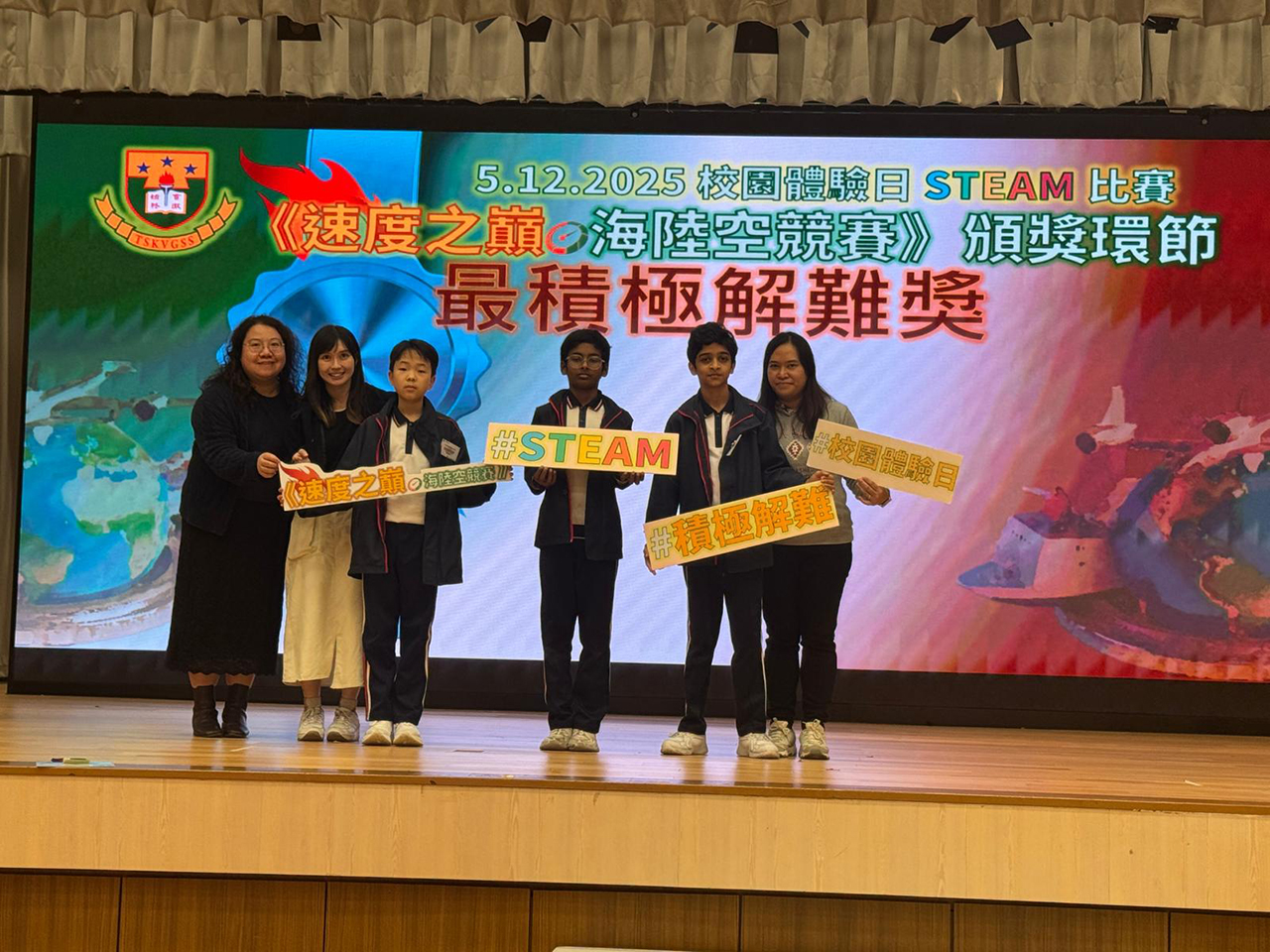 Six P6 students from our school participated in a STEAM competition hosted by Tang Shiu Kin Victoria Government Secondary School on 5th December, 2025. The event challenged them to build their own racing boat and planes, then compete in races that highlighted teamwork and scientific principles like aerodynamics and buoyancy.